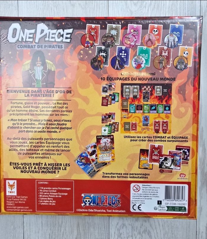 Jeu de société One Piece sous licence officielle. Affrontez vos amis dans des combats de pirates stratégiques mêlant plateau et deck building. Un jeu dynamique et accessible, parfait pour les fans de l’univers One Piece et les soirées en famille.