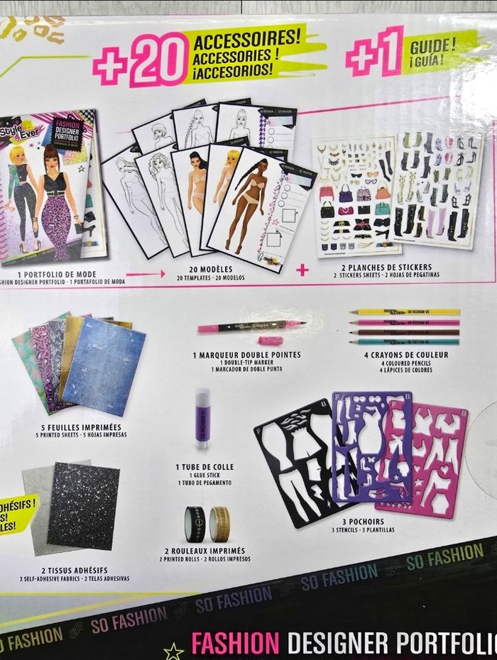 Portfolio créatif Style 4 Ever conçu pour les enfants passionnés de mode. Permet de dessiner, imaginer et créer ses propres collections grâce à de nombreux accessoires inclus. Un jeu créatif idéal pour développer imagination, sens du style et créativité.