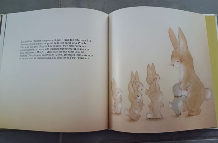La famille Dulapin rencontre un petit lapin en peluche, perdu dans la forêt. Pour les uns, c'est la découverte de la civilisation, pour l'autre, la découverte de la nature. A partir de 3 ans.