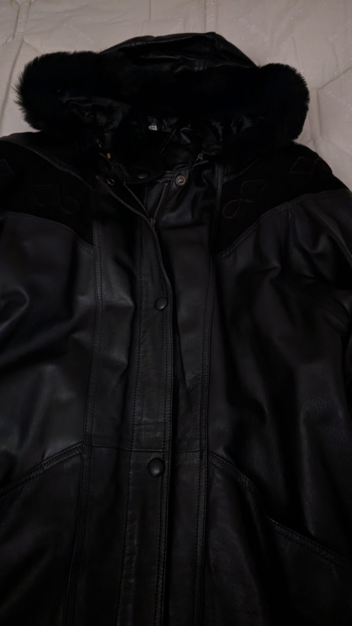 Veste à capuche en cuir agneau, grande, noire - photo numéro 3