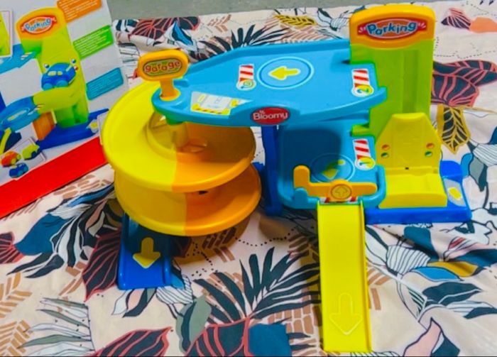 Votre tout-petit aime les garages ? Offrez-lui ce garage à deux niveaux contenant de nombreuses activités de jeu telles que : 1 ascenseur, 1 barrière, 1 toboggan, 1 double rampe.