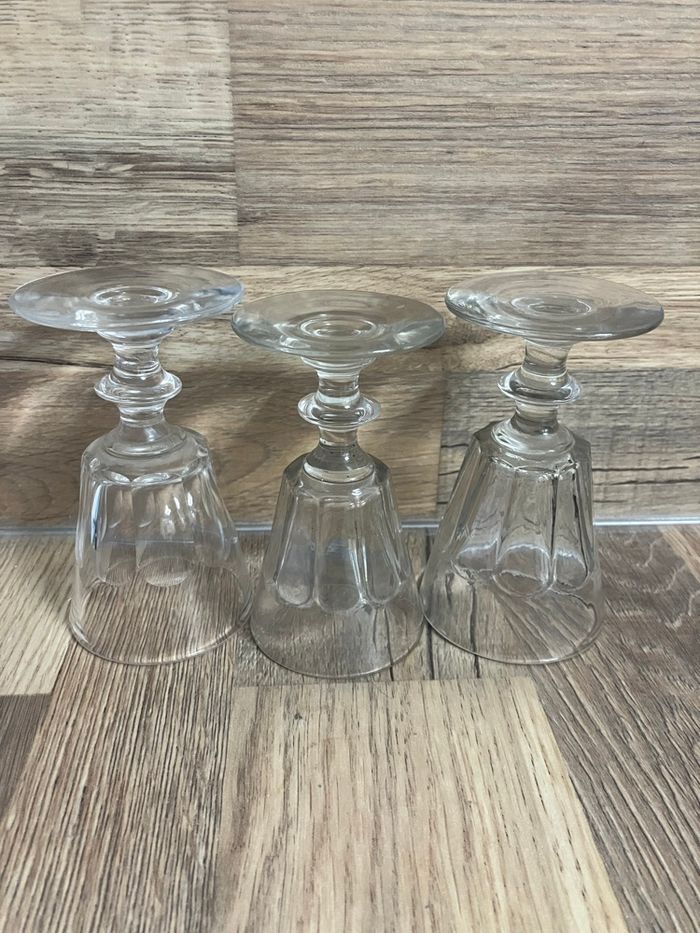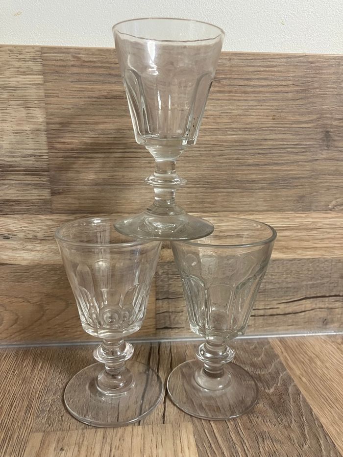 Ce lot comporte 3 verres à vin cuit, avec des côtes plates dans le style Caton