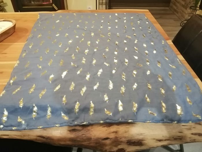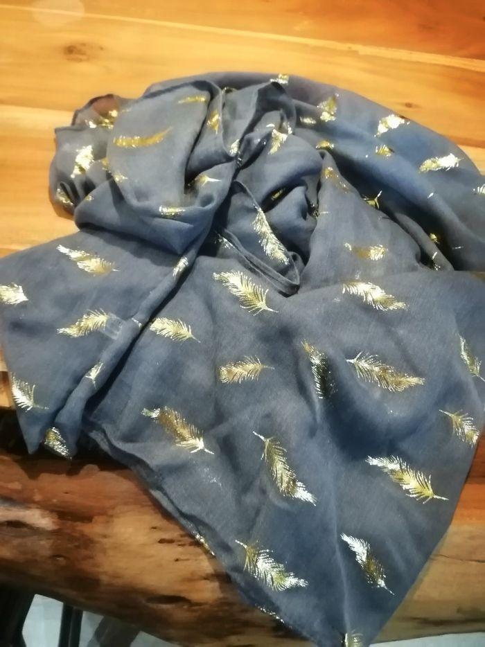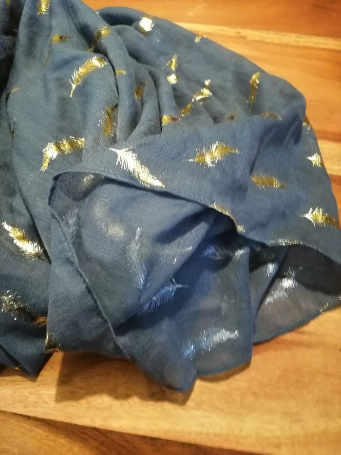 Foulard chic neuf ,bleu profond ,feuilles scintillant doré ,boutique privée