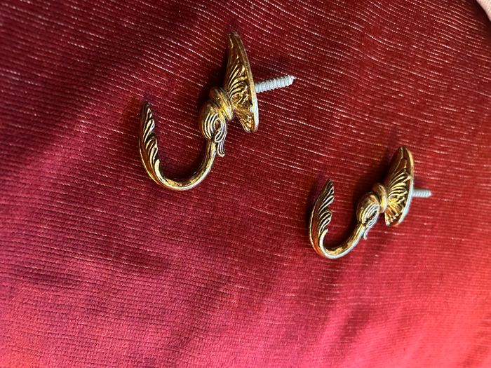 Paire de Crochets Embrasses Rideaux - Style Ancien / Baroque - Laiton Doré