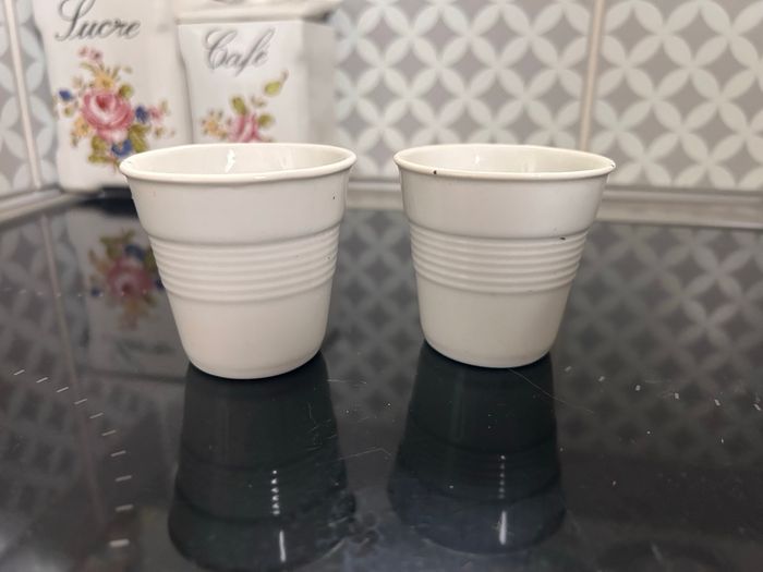 Joli lot de 2 gobelets à expresso en porcelaine de la célèbre manufacture française Revol.