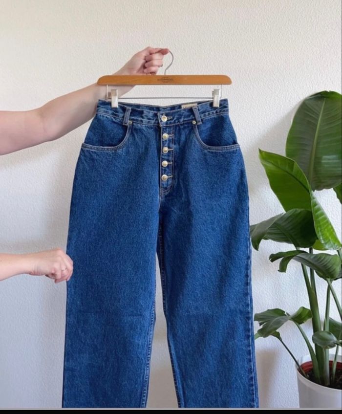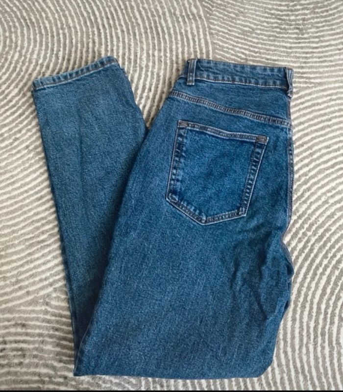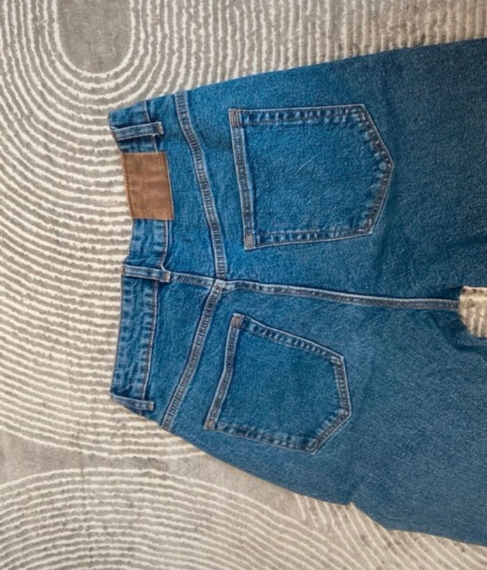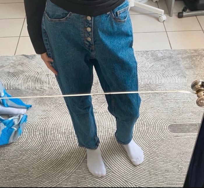 • Coupe : mom fit / straight fit (taille haute, légèrement ample sur les jambes)