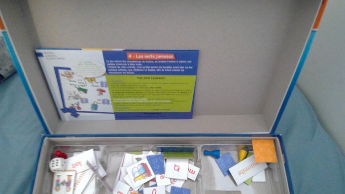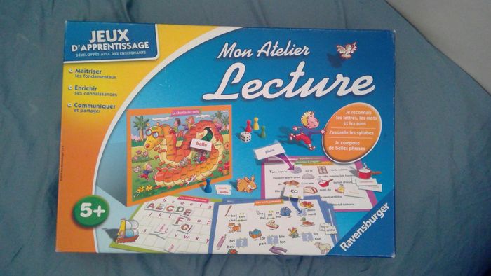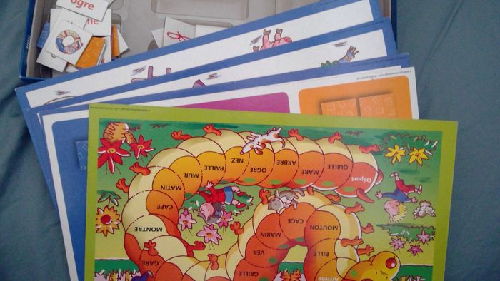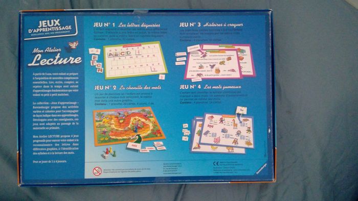 Dès 5 ans. 4 jeux progressifs pour exercer l'enfant à la reconnaissance des lettres dans différentes graphies, à l'identification des syllabes et lecture des mots. Contenu : 5 planches recto-verso, 128 jetons, 1 dé, 4 pions, 1 livret pédagogique