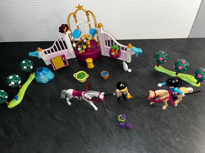 Magnifique lot Playmobil sur le thème du centre équestre, parfait pour les amoureux des chevaux et des jeux d’imagination 🐴✨