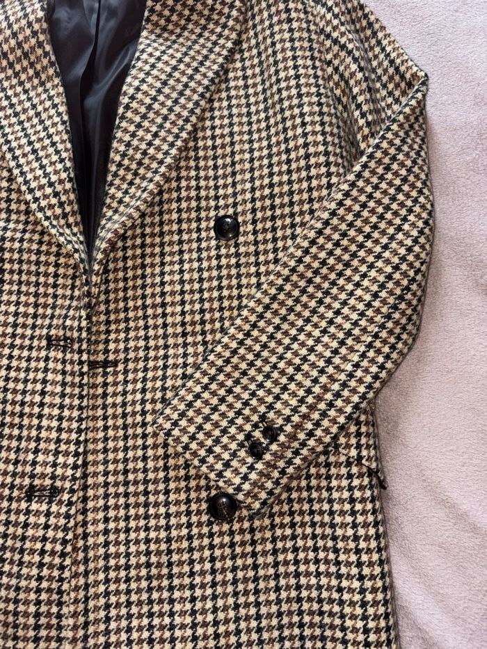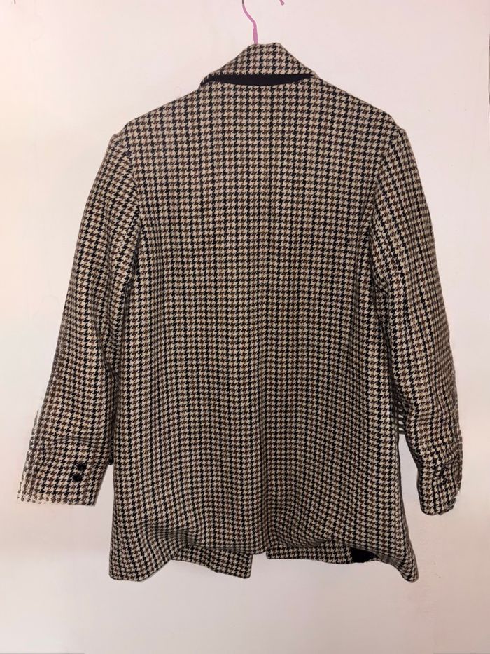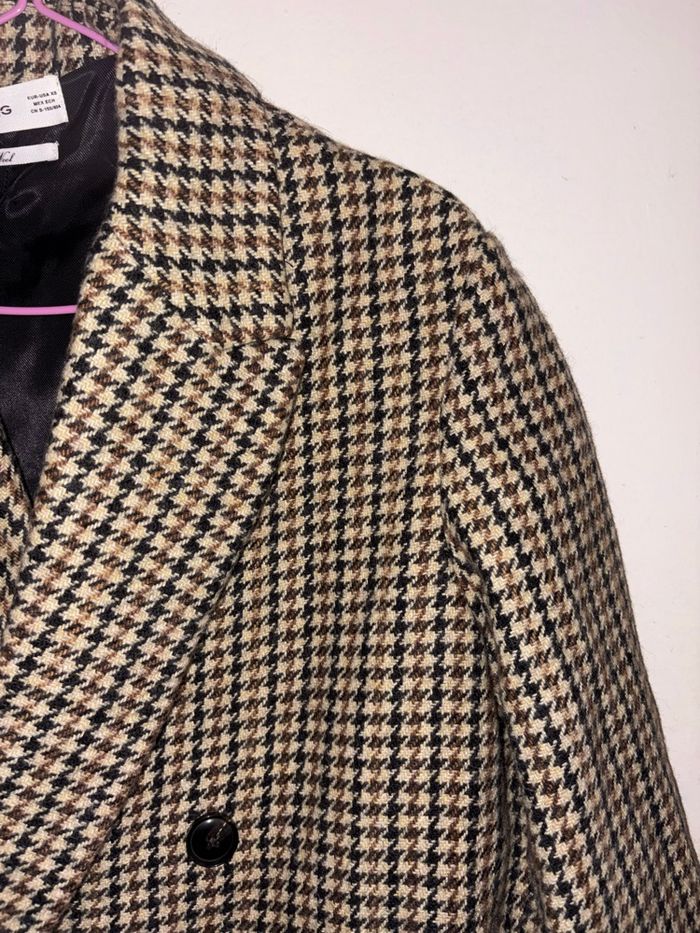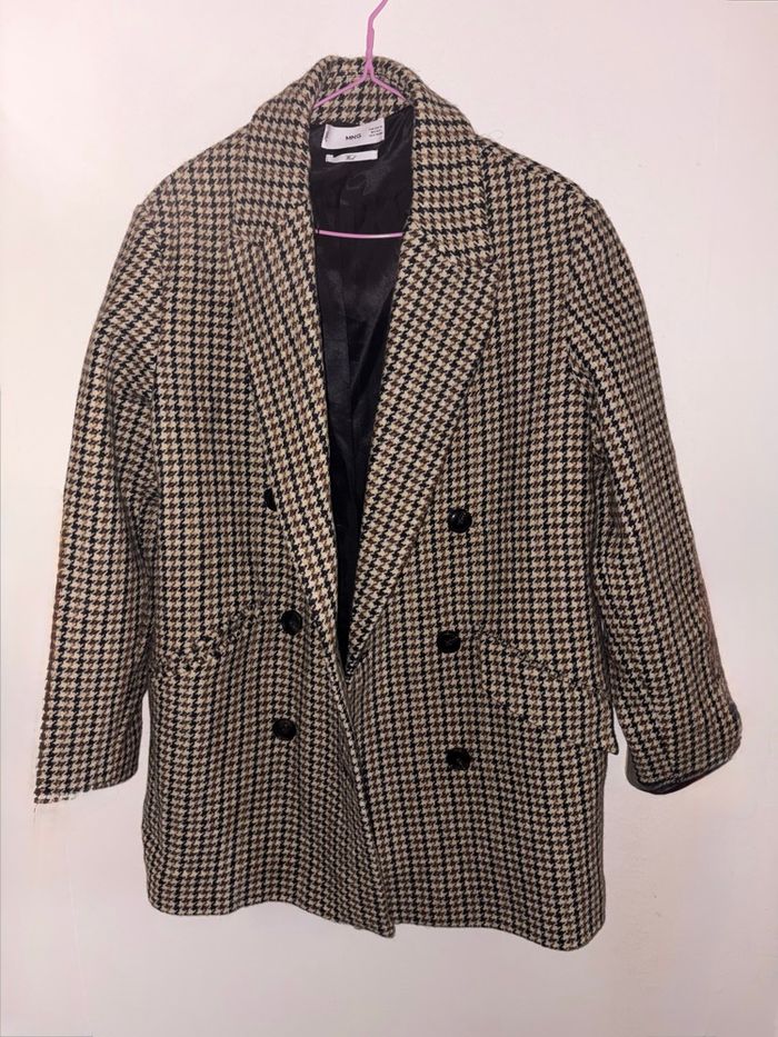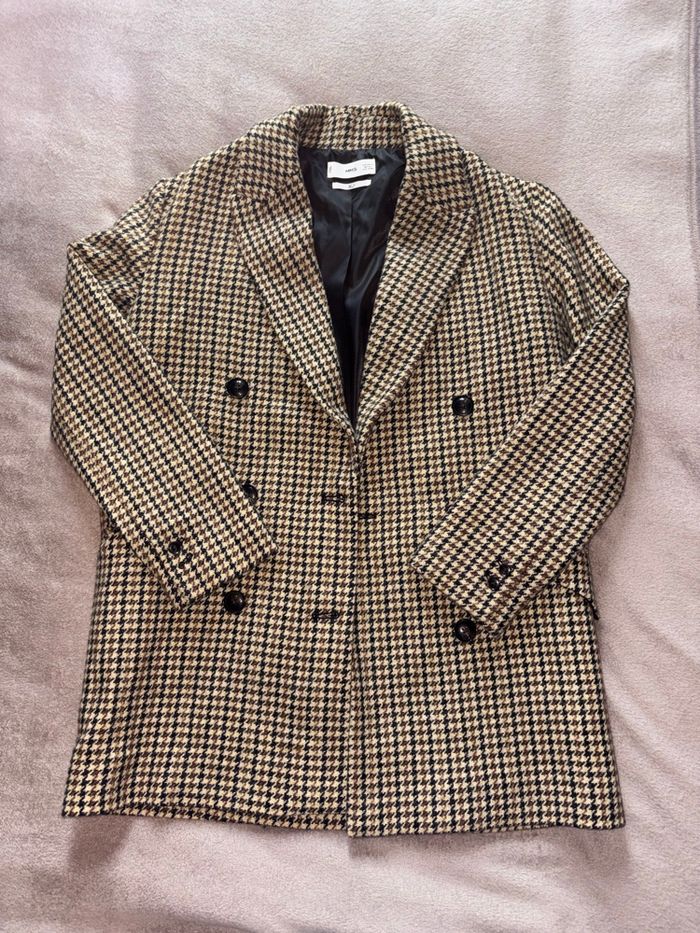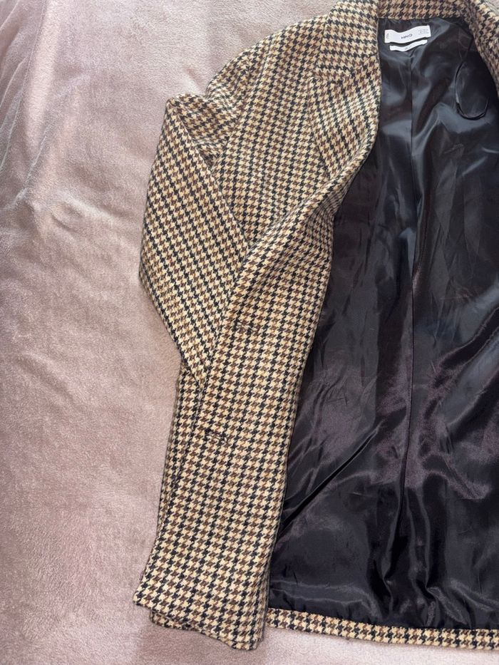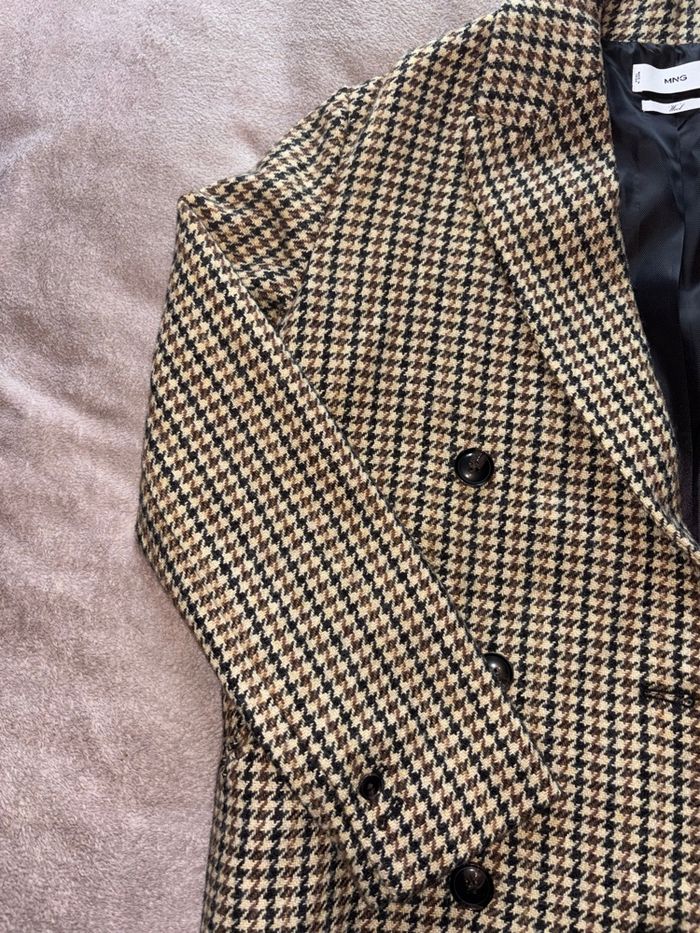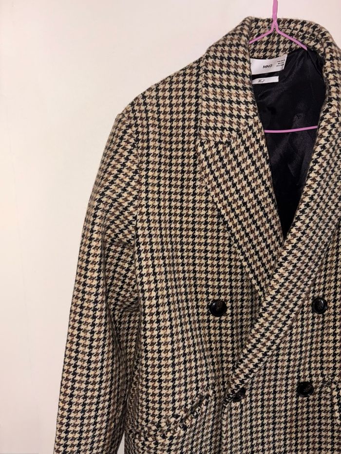 Manteau Mango au motif pied-de-poule iconique, coupe droite élégante et structure impeccable.