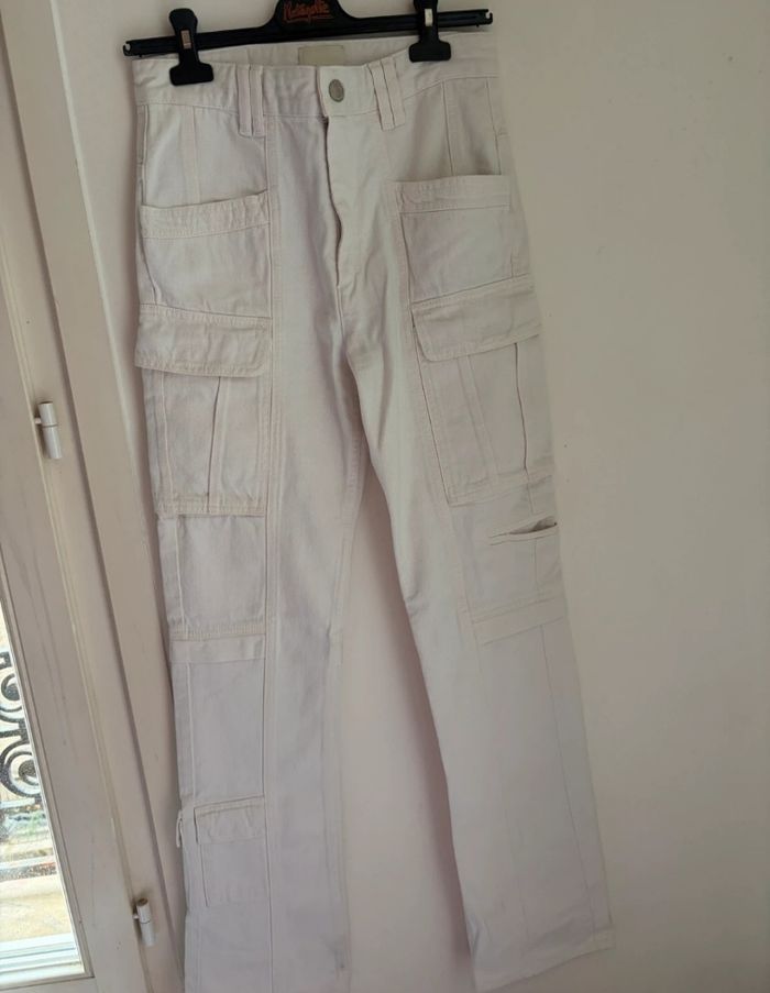 Jean/pantalon cargo Isabel Marant, de couleur blanc cassé.