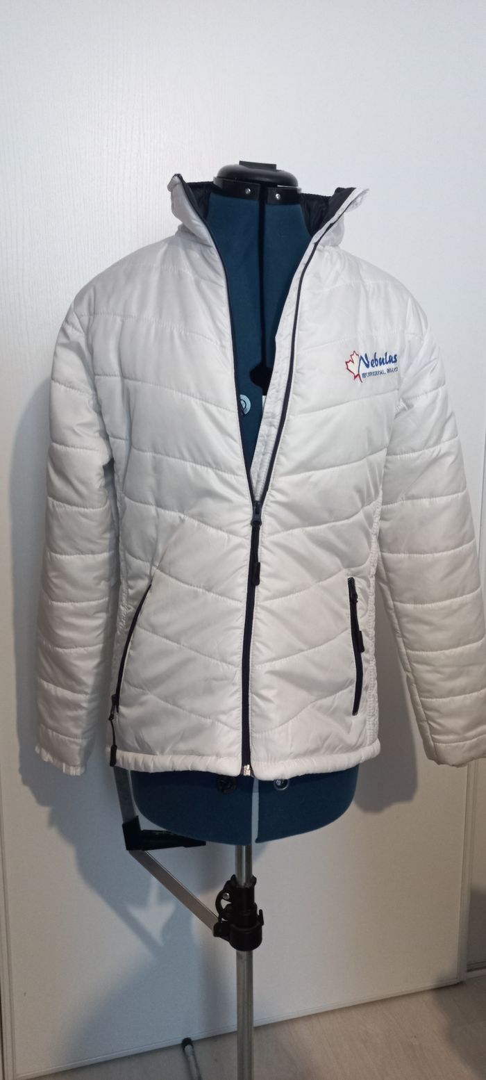 Doudoune blanche de la marque norvégienne Nebulus, en taille S, intérieur contrastant marine.