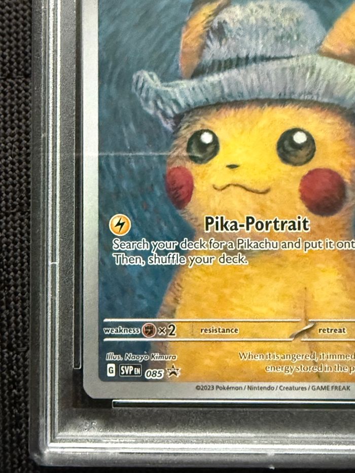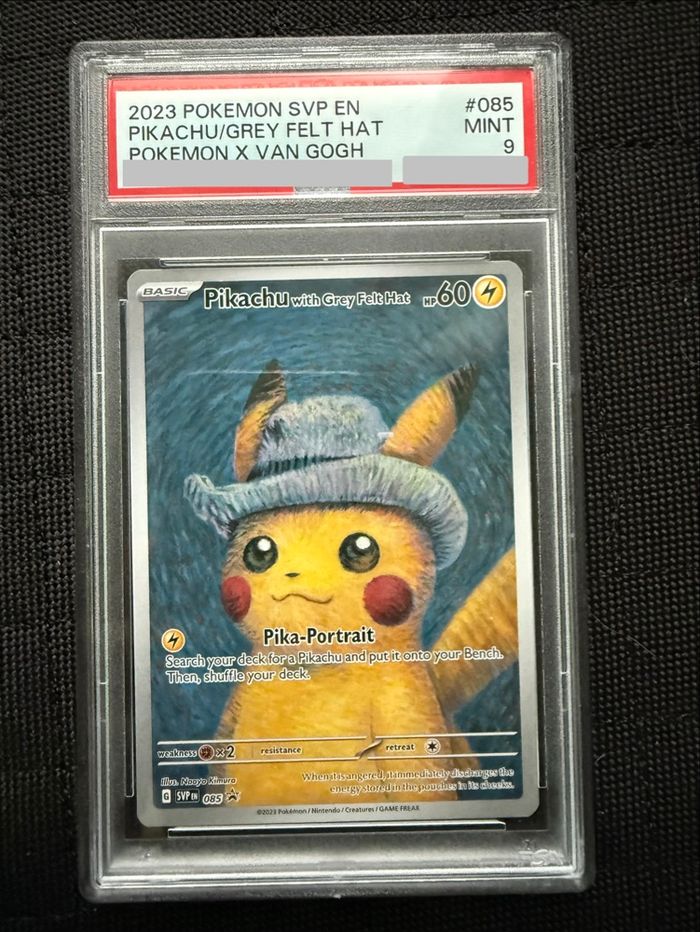 Carte Pikachu Van Gogh, certifiée PSA 9 (Mint), sous boîtier scellé officiel PSA.