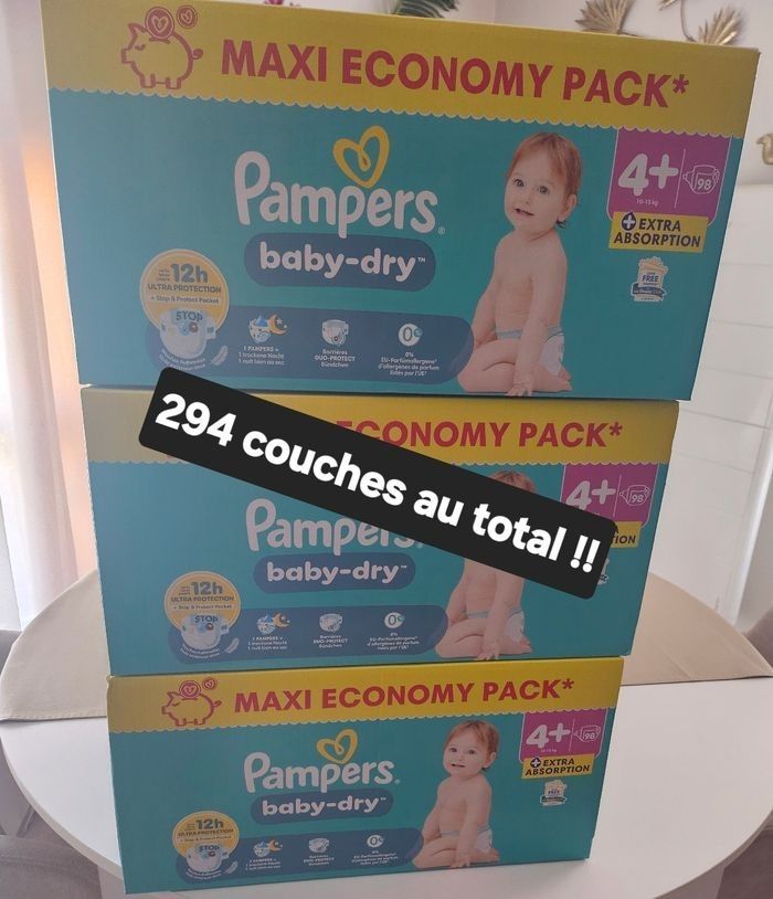 Lot de 3 packs de couches pampers baby dry taille 4+