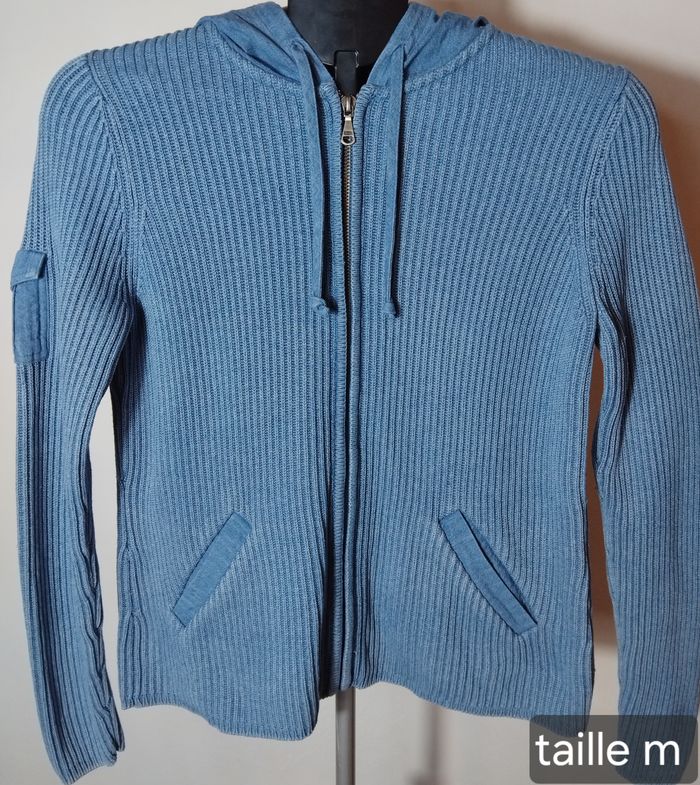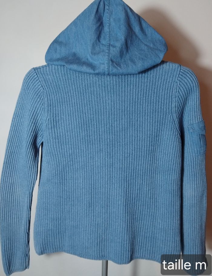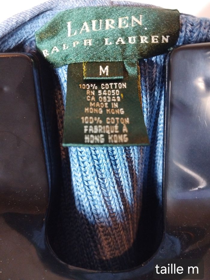 Je vends cette veste à capuche en maille côtelée de la marque Lauren Ralph Lauren, de couleur bleu ciel.