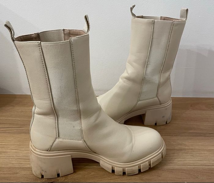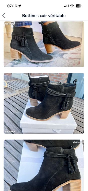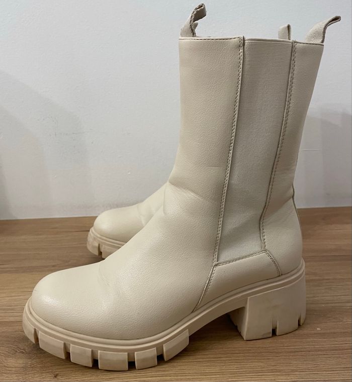 Paires des Bottine Beige Motif uni similicuir femme taille 38 talon Carré