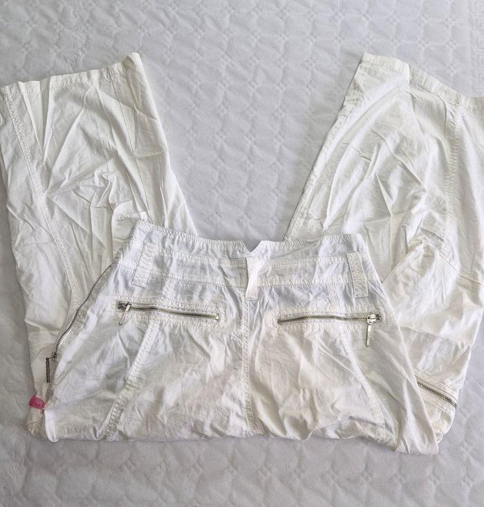 Bonjour , vend pantalon parachute / bouffant , jambes larges , coupe originale avec une jambe 2x plus large qui se rabat sur la fermeture du pantalon . Avec étiquette , jamais porté , valeur neuf : 69e . De la marque The future sound of tokyo Taille 34 / XS , très bon état #mode #trend #tendance #marque #quality #qualité #femme #woman #women #pantalon #pants #Y2k #cargo #original #aesthetic