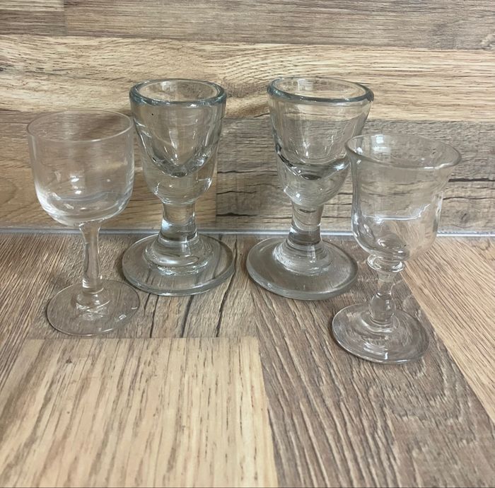 Ensemble de 4 jolis verres à liqueur anciens en bon état : pas de fêlure ni d’ébréchure.