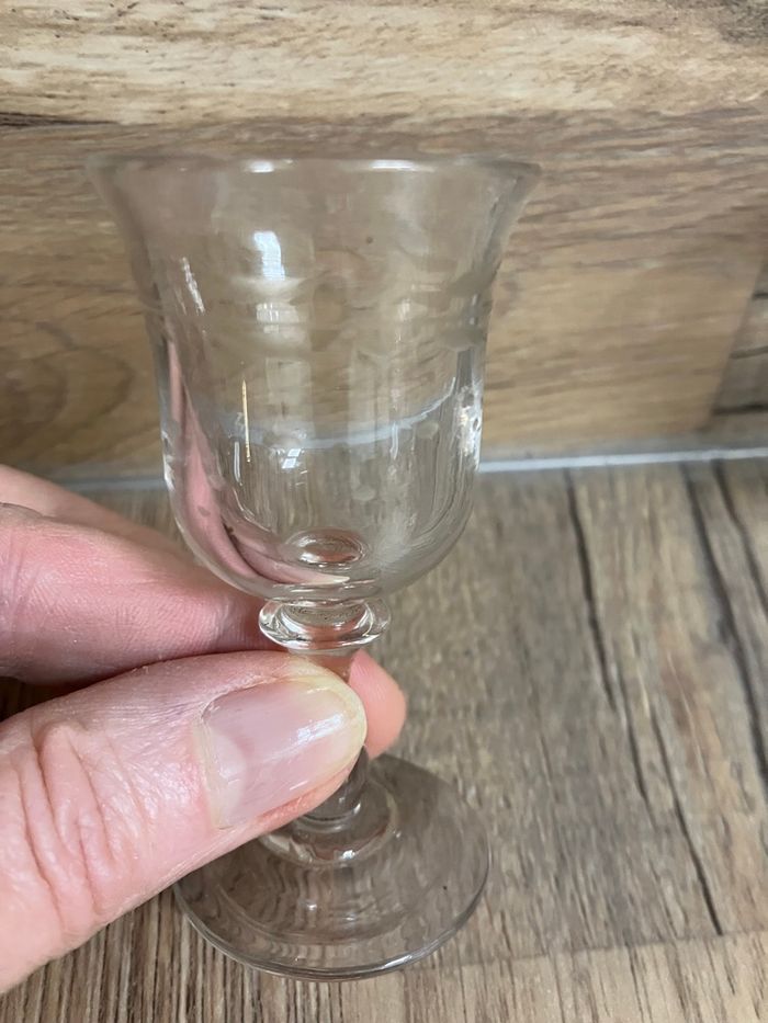 - 1 verre fin simple : hauteur : 7,5 cm/ diamètre 3,5 cm
