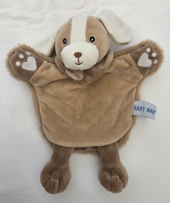 Doudou ferme marionnette chien beige et marron - Baby Nat