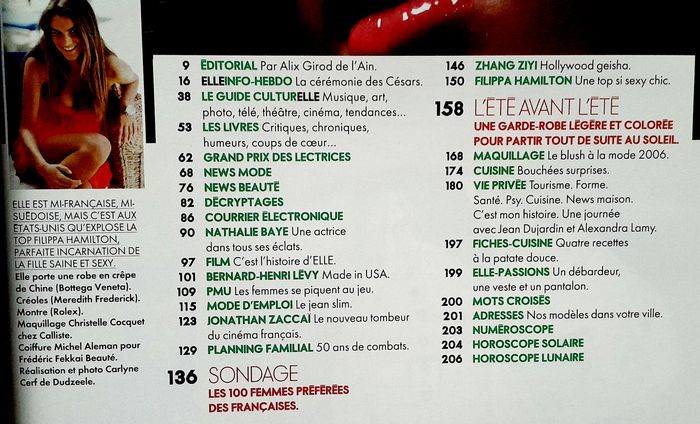 Magazine Elle n°3140 mars 2006 spécial Filippa Hamilton