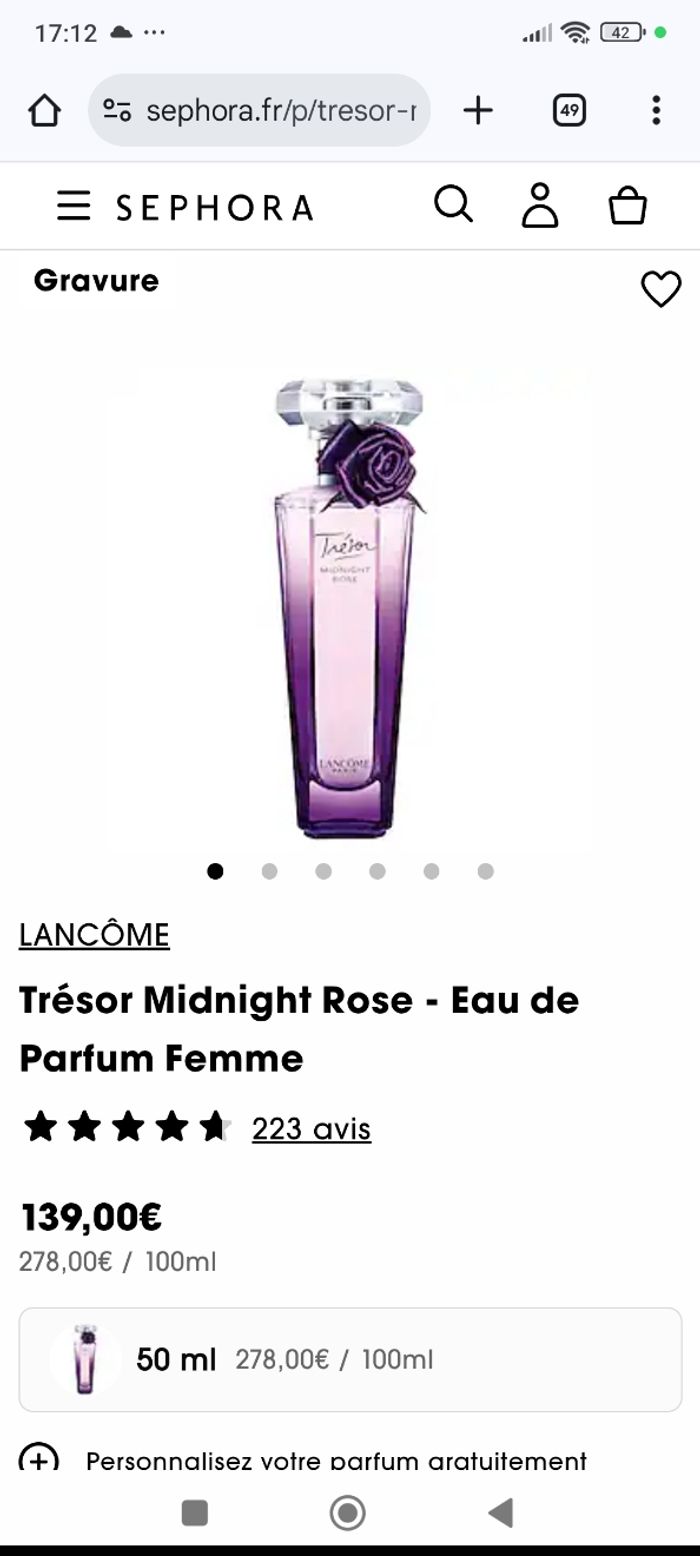 Parfum Trésor Midnight De chez Lancôme Eau de parfum 50mL Produit authentique! Neuf, sous blister Envoie soigné et rapide