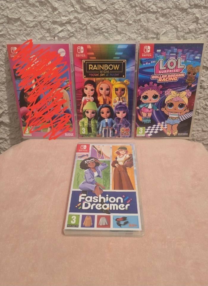 Lot 3 jeux Nintendo Switch. Excellent état. -Fashion Dreamer -Rainbow High - Panique sur le Podium -LOL Surprise! Roller Dreams Racing Envoi rapide et soigné.