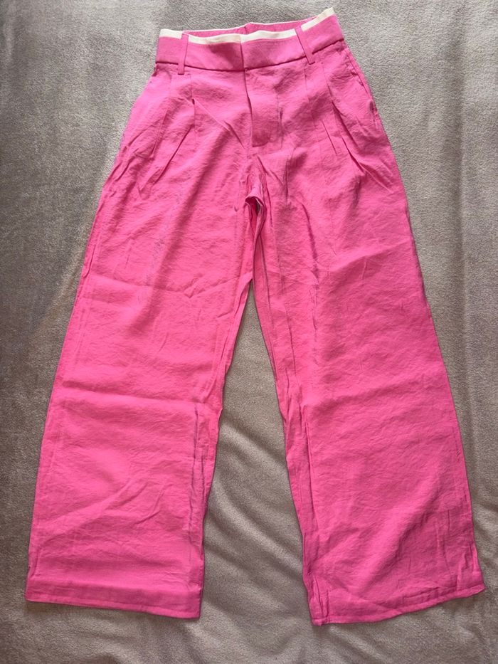 Pantalon rose à jambes larges stradivarius taille 32 en très bon état.