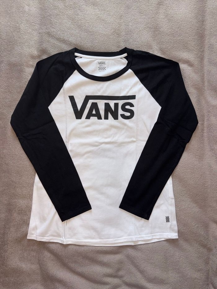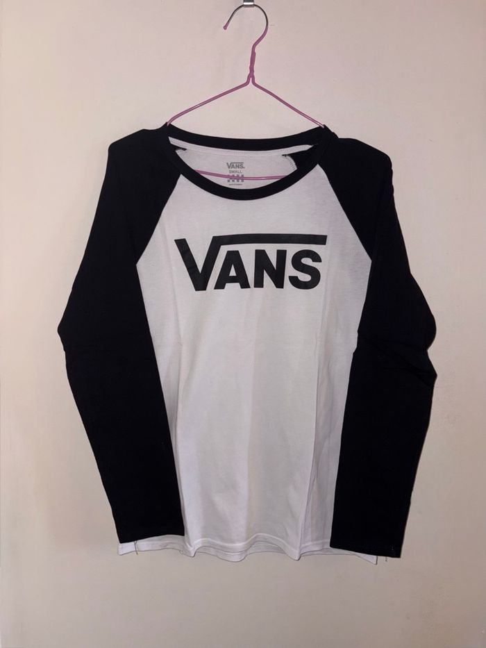 T-shirt à manches longues Vans noir et blanc taille S en très bon état.
