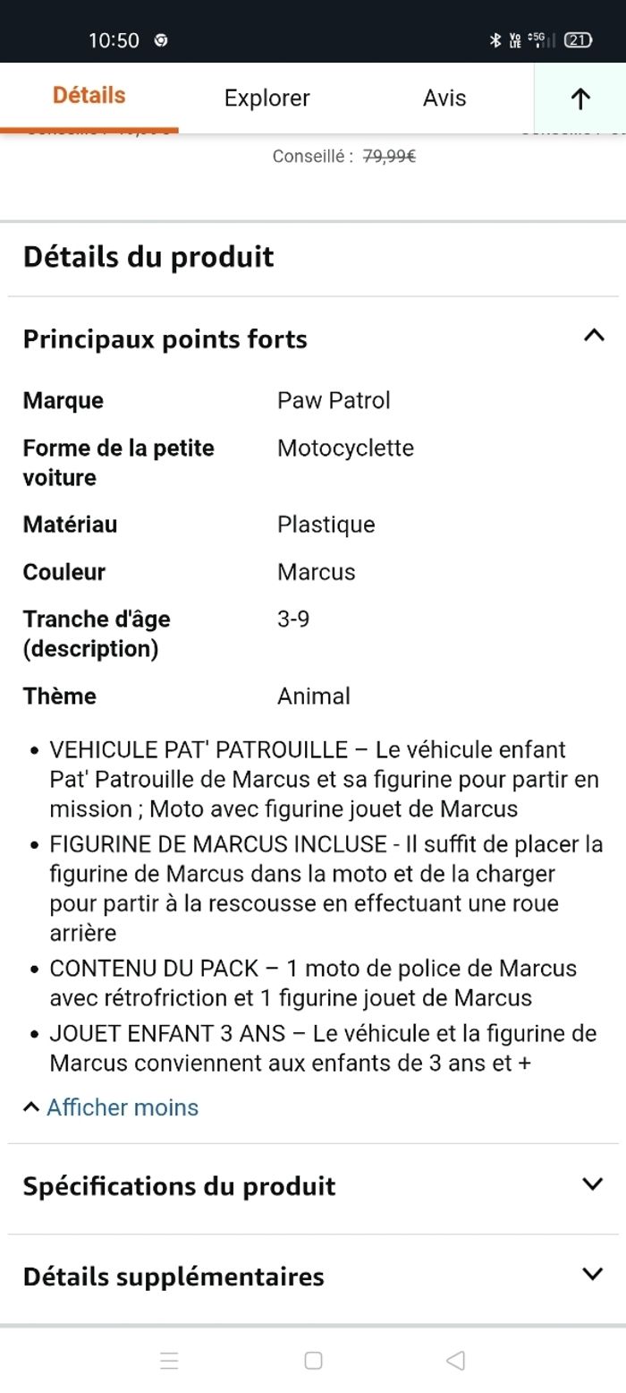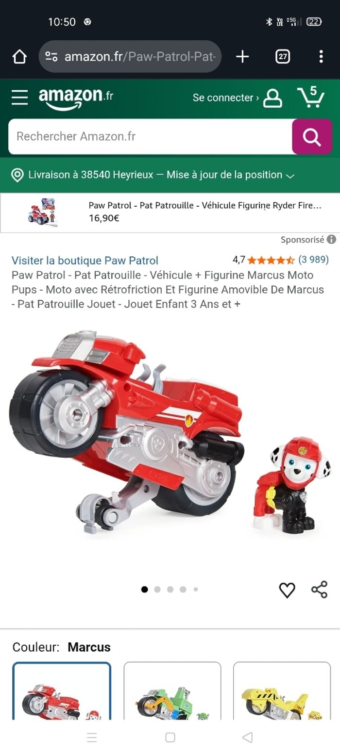 Moto + personnage Marcus Pat patrouille Description en photo Très bon état