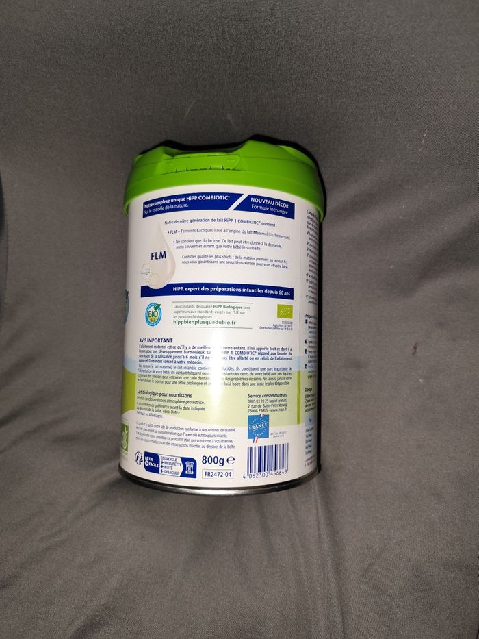 Je vends une boîte de lait infantile HiPP Biologique Combiotic 1er âge (de 0 à 6 mois). Il est adapté en Relais de l'allaitement