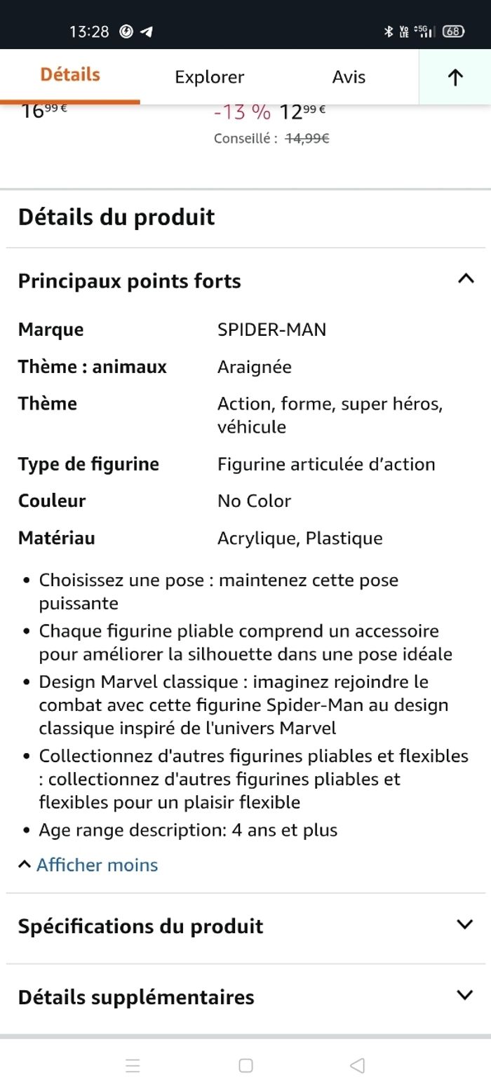 Moto + figurine spiderman Description photo Très bon état