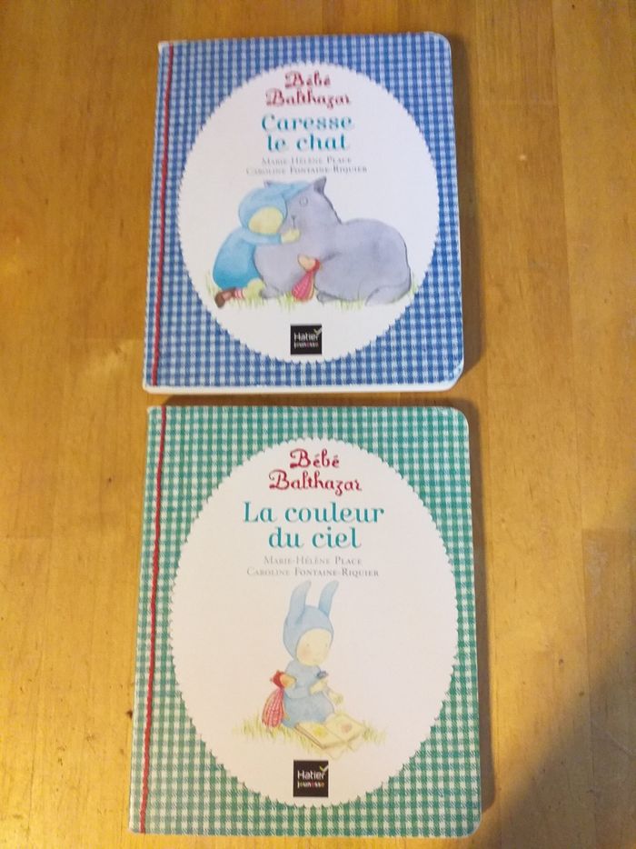 Lot de 2 titres cartonnés adaptés aux petites mains. Bebe Balthazar caresse le chat / Bebe Balthazar la couleur du ciel. Deja manipulés, intérieur en tres bon etat, couvertures usagées. Petit prix