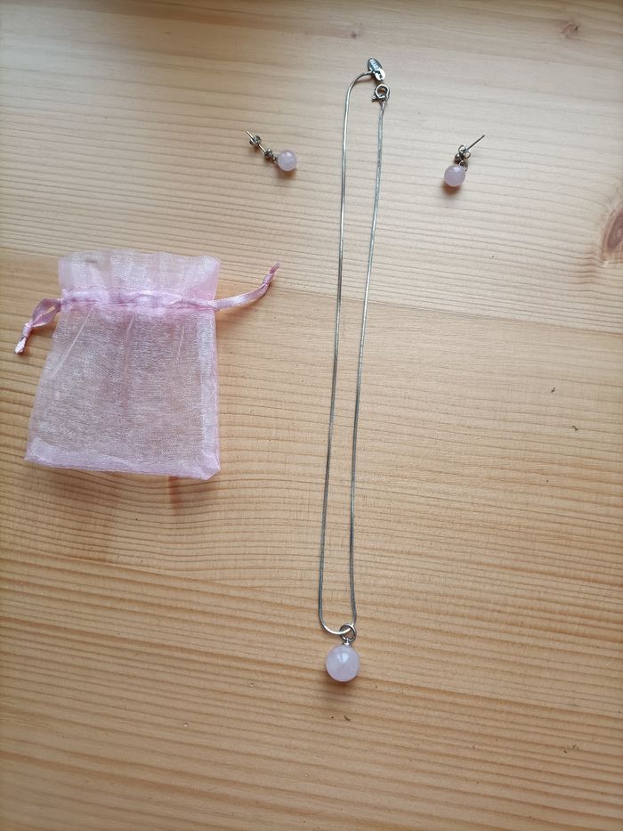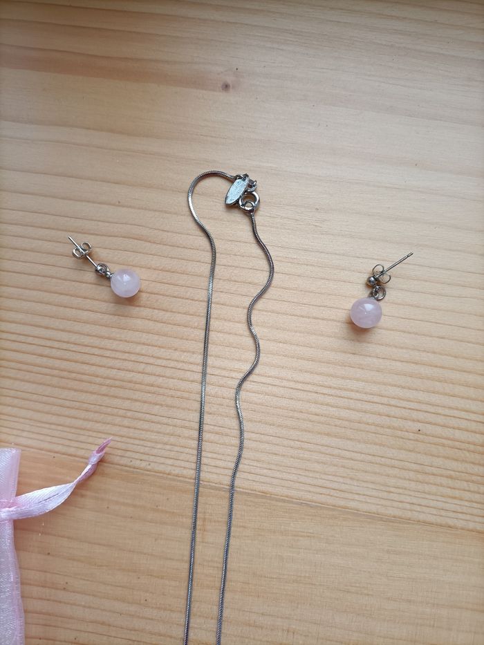 Parure bijoux fantaisie argenté rose boucles d'oreilles+ collier femme comme neuf