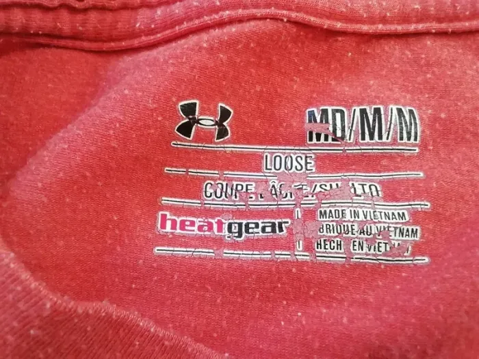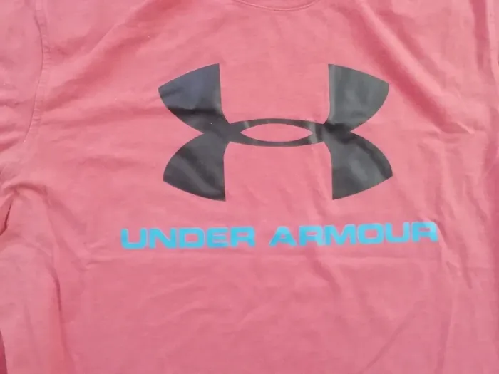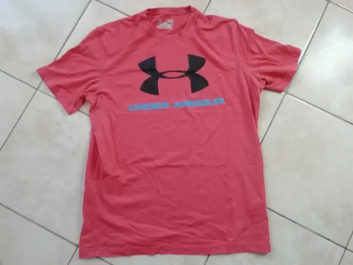 DE COULEUR TON ORANGE/CORAIL. MARQUE UNDER ARMOUR. ASSEZ MIXTE (les homme porte ce genre de couleur maintenant). ASSEZ PORTE DONC MATIERE VIELLIE MAIS TRES CORRECT.... TAILLE NOTÉE : M, VOIR MENSURATIONS CI DESSOUS : HAUTEUR : env cm. LARGEUR AISSELLES : env cm.