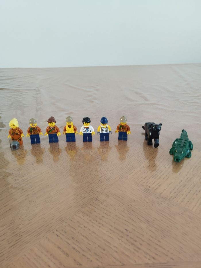 L'ensemble regroupe plusieurs lots de lego de la collection "jungle" qui comprend 5 véhicules dont un hélicoptère, 6 personnages et 2 temples + tous les accessoires. Vendu sans les notices mais monté