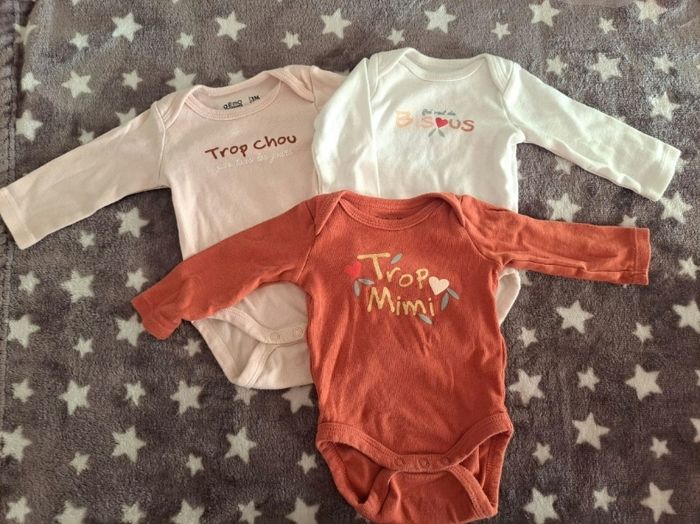Lot 3 bodies manches longues gémo 3 mois - photo numéro 2