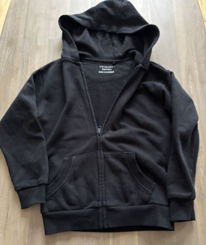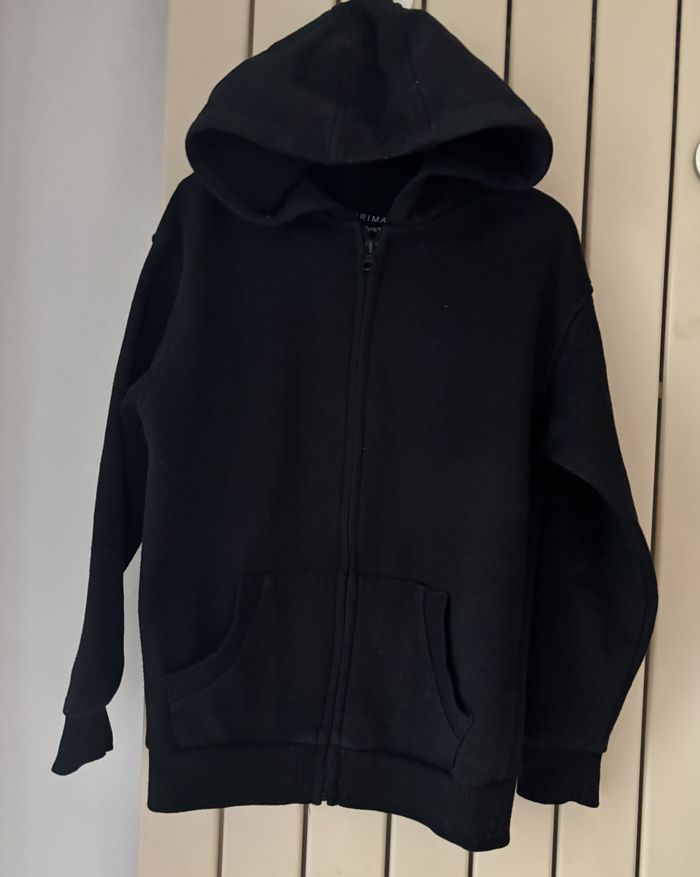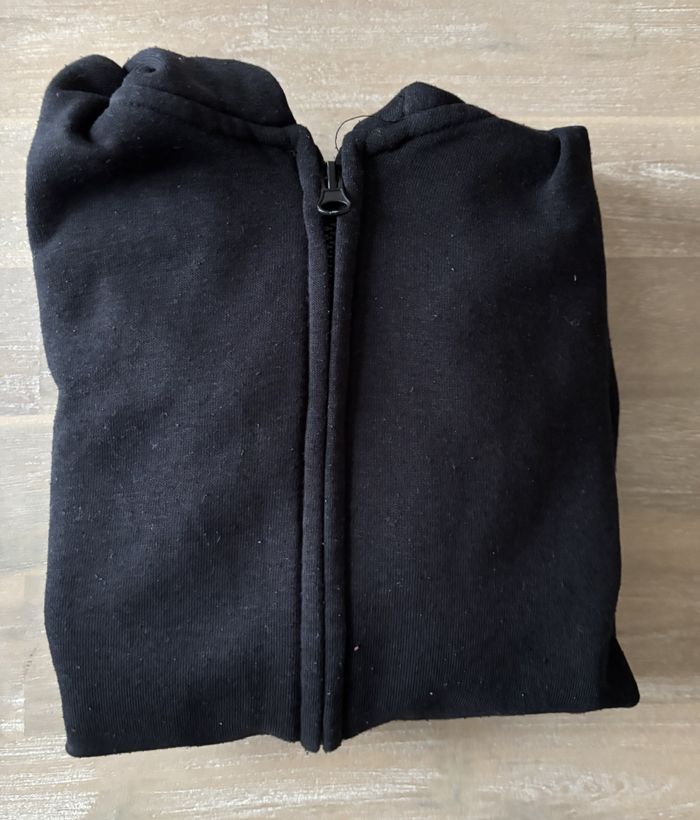 Sweat, veste à capuche Primark. Manches longues, poche sur le devant, capuche doublée. Zippé devant. Coloris noir. Taille 8/9 ans. Très bon état. Pensez à faire des lots😉.