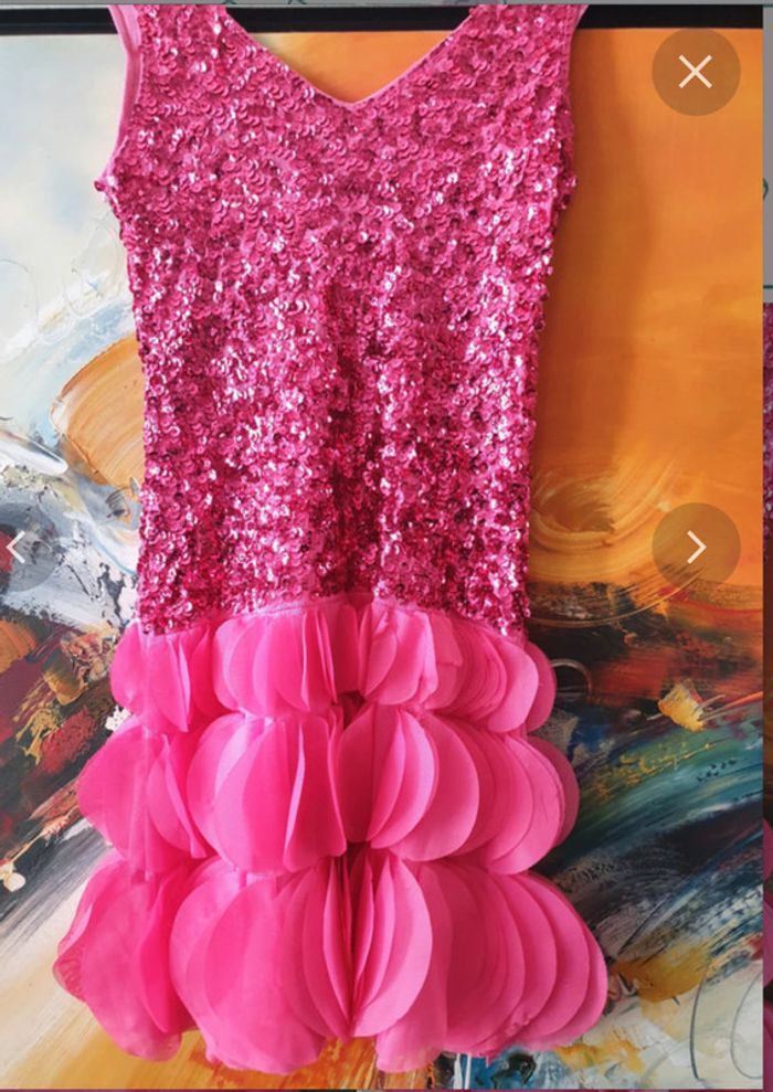 Robe de soirée rose pailletée, trés originale!! Pouvant être mise dès 7 ans jusqu’à 10 ans
