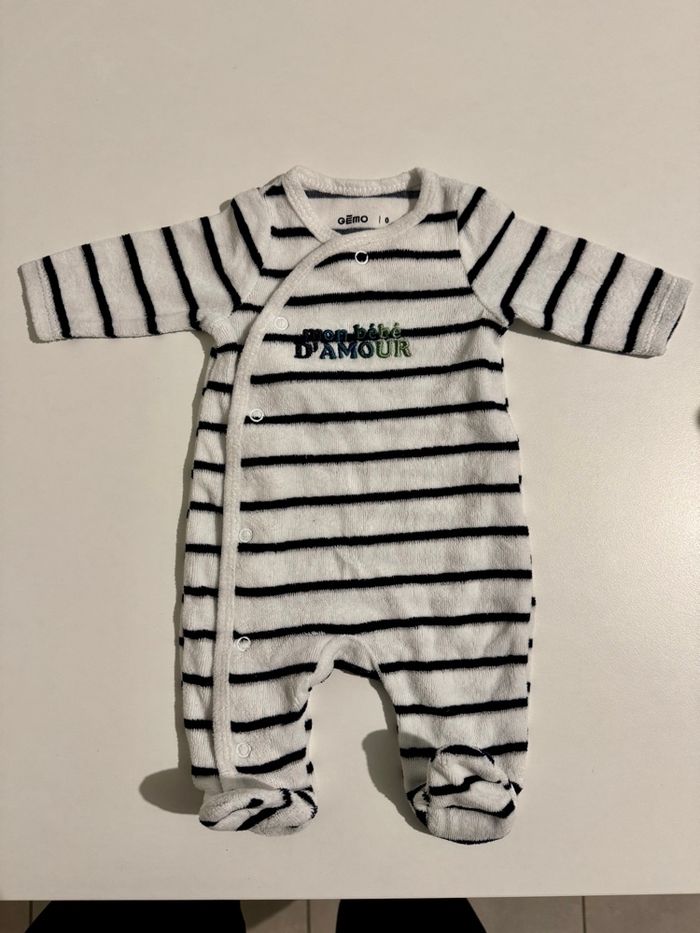 Pyjama bébé gémo 0 mois rayé blanc et noir