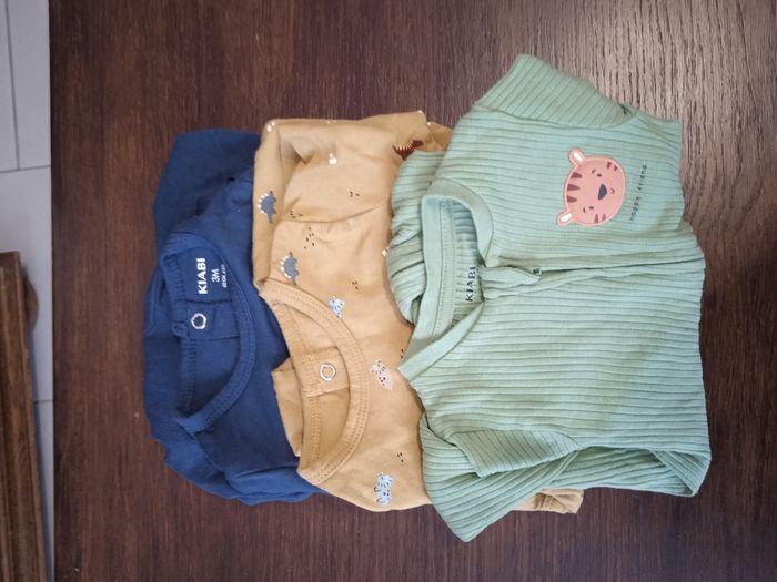 3 pyjamas coton Kiabi 1 Vert fermeture devant 2 bleu et dinosaures fermeture derrière Très bon état 4€