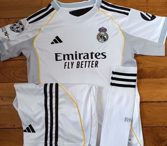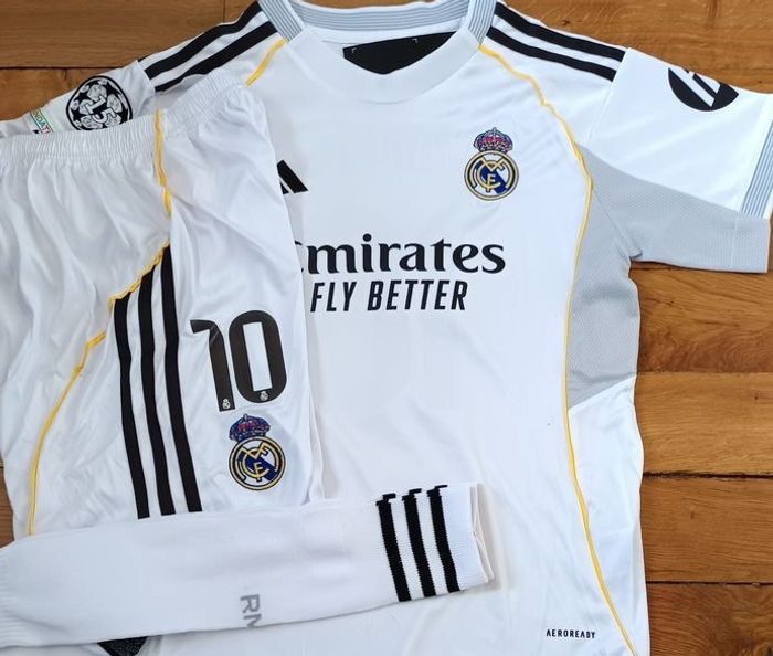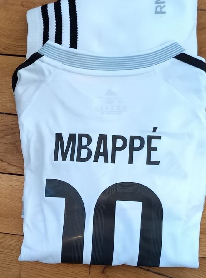 Kit football Réal de Madrid Mbappé taille 12 ans modèle blanc 2026 + patch