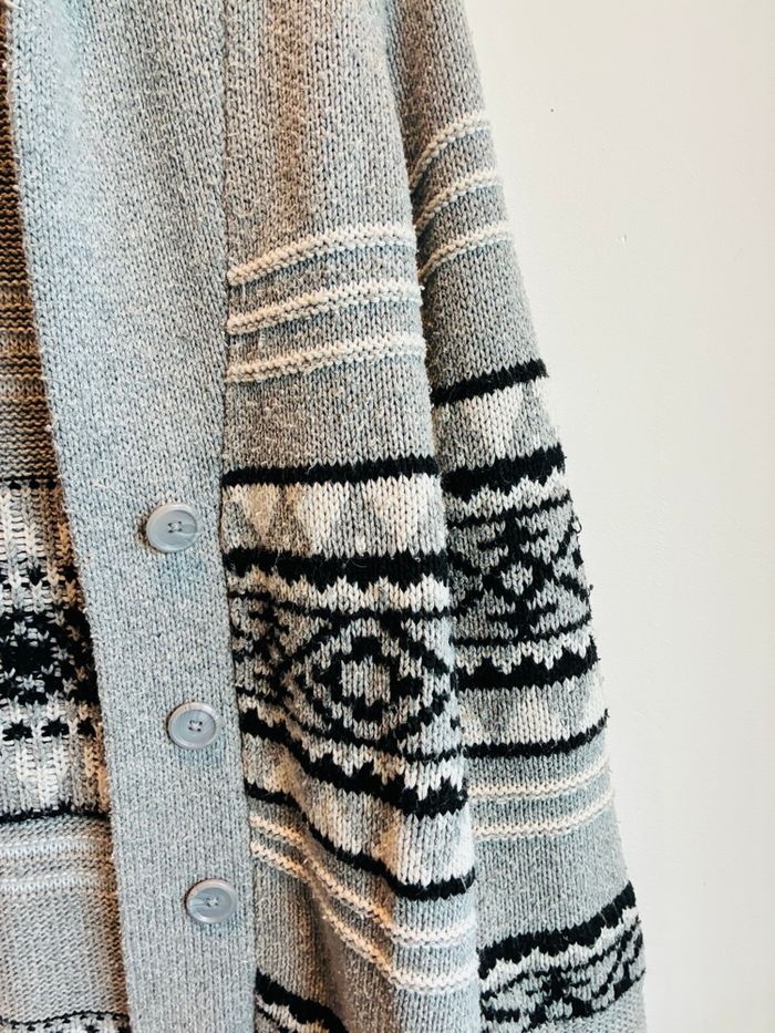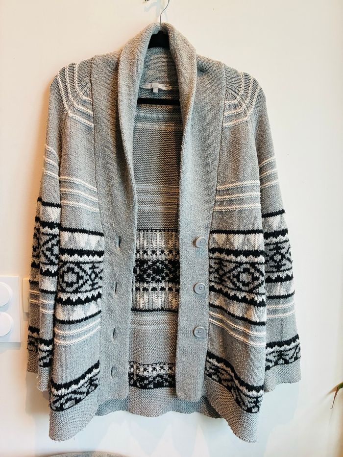 Gilet long en laine Pour l’hiver Pour femme Boutons sur le devant Col remontant Gris / blanc / noir Motifs géométriques Marque : Gemo Taille : M En bon état #stefetjuju51femme3638 maison non fumeurs bien d’autres choses dans mon dressing de nouveaux articles très régulièrement nombreux # dans mon profil pour faciliter vos recherches merci pour votre visite et belle journée ☺️ #gilet #hiver #long #femme #laine