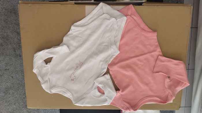 Lot de 2 bodies le blanc à 1 tâche très légère au col et au niveau d'une pression