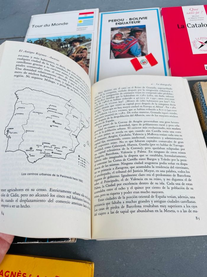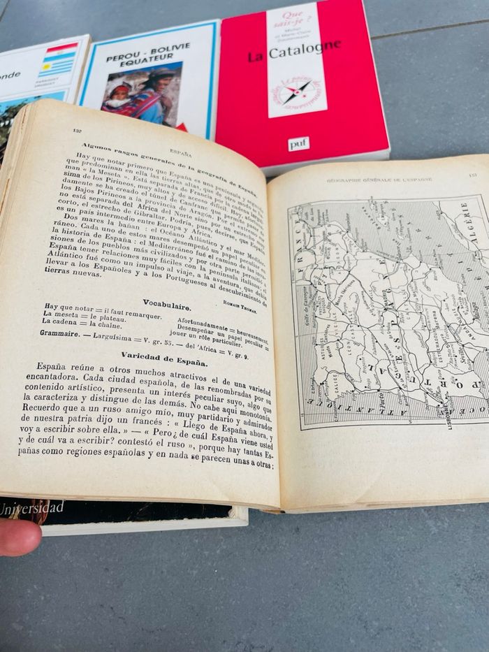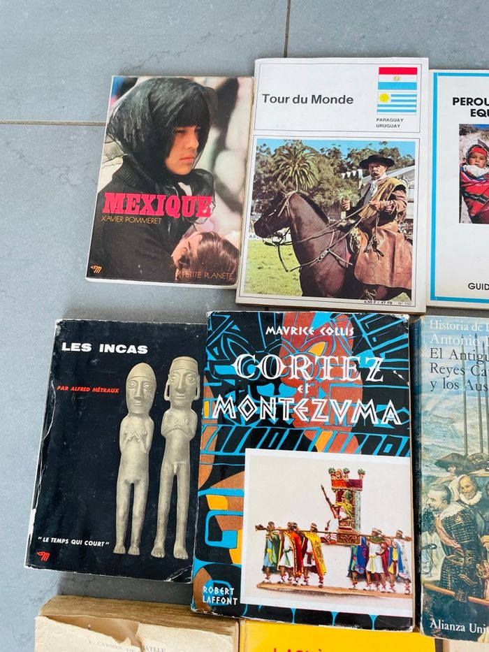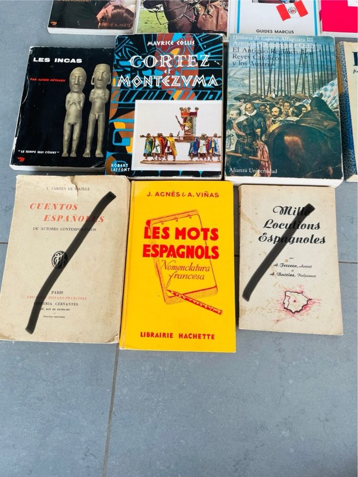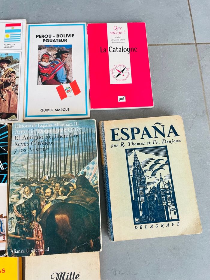 Différentes livres sur différentes thématiques autour de l’Espagne et l’Amérique latine Les livres sont en français sauf mention contraire Entre 2€ et 3€ à l’unité ou prix total indiqué pour le lot Le Mexique de Xavier pommeret (petite planète ) (1964) Tour du monde Paraguay et Uruguay 1972 Pérou Bolivie équateur du guides marcus 1987 Que sais je la Catalogne (annoté de certains endroits au crayon de papier ) Les incas de Alfred metraux : le temps qui court 1968 Cortez et montezuma de Maurice collis (Robert laffont 1956) Historia de espana alfaguara III : antiguo regimen : los reyes catolicos de alianza universidad (en espagnol) España delagrave : textes avec vocabulaire : idéal enseignant (1943) Cuentos españoles : libreria cervantes (1930) Les mots espagnols hachette (1948) Mille locutions espagnoles (1948) Possibilité d’avoir plus de photos et de renseignements sur chacun des livres Beaucoup d’autres livres en espagnol ou sur la culture dans mon dressing #stefetjuju51livre #lot #livre #espagne #espagnol #ameriquelatine #culture #histoire #ancien