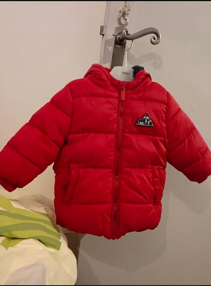 Bien chaude doublé Sherpa bleu marine fermeture éclair en très bon état peu porté ! Taille élastique ! Capuche non amovible !