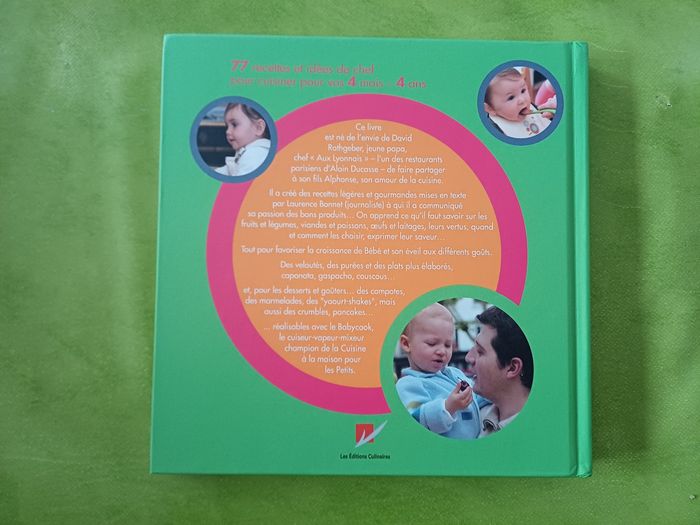 L'auteur, chef dans un restaurant parisien mais aussi jeune papa, propose aux parents des recettes variées, simples ou plus élaborées pour éveiller leur enfant de 4 mois à 4 ans, au goût et lui transmettre l'amour des bonnes choses. Les recettes sont classées en 6 thématiques (premières purées et compotes, viandes, fruits...), avec des conseils, des informations nutritionnelles, des suggestions...