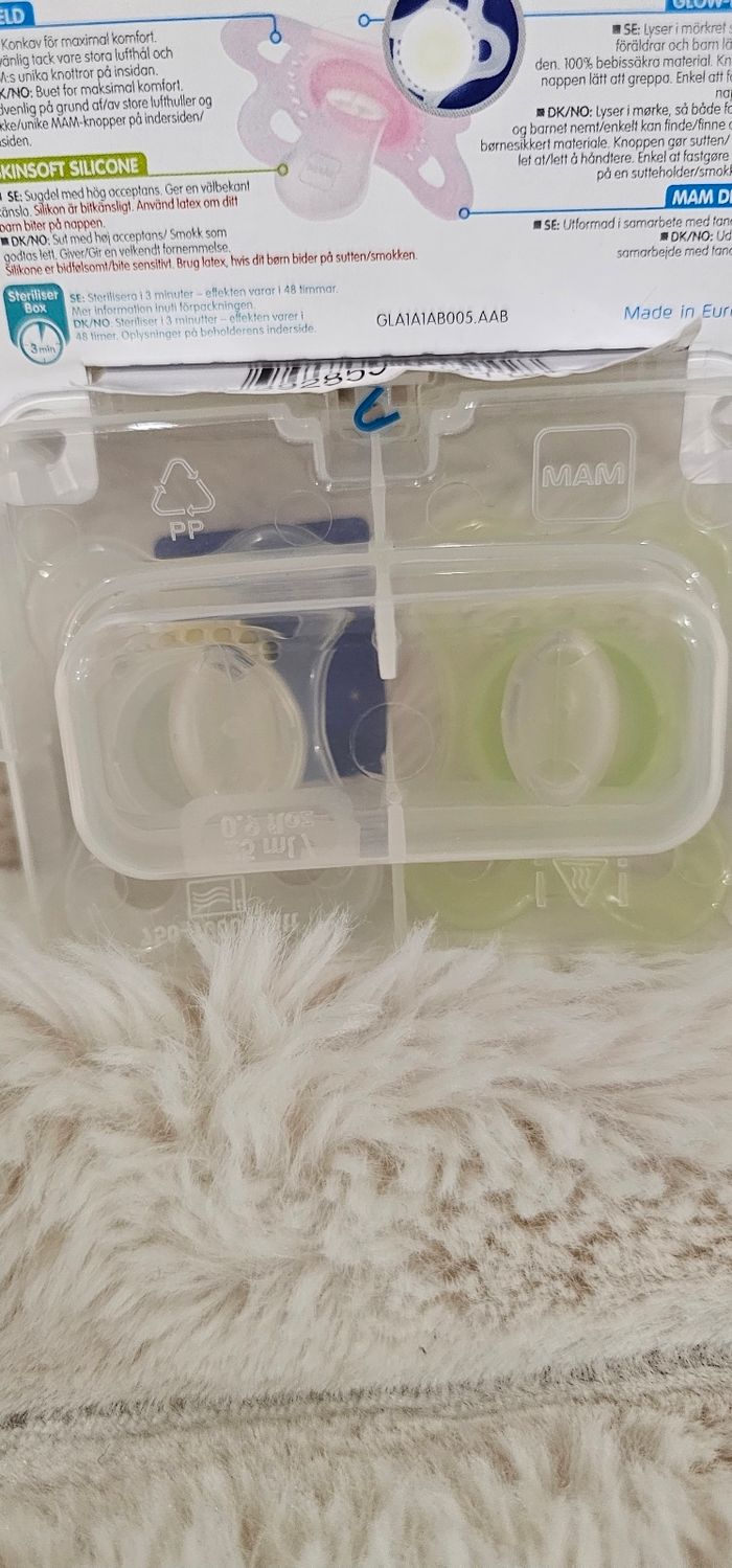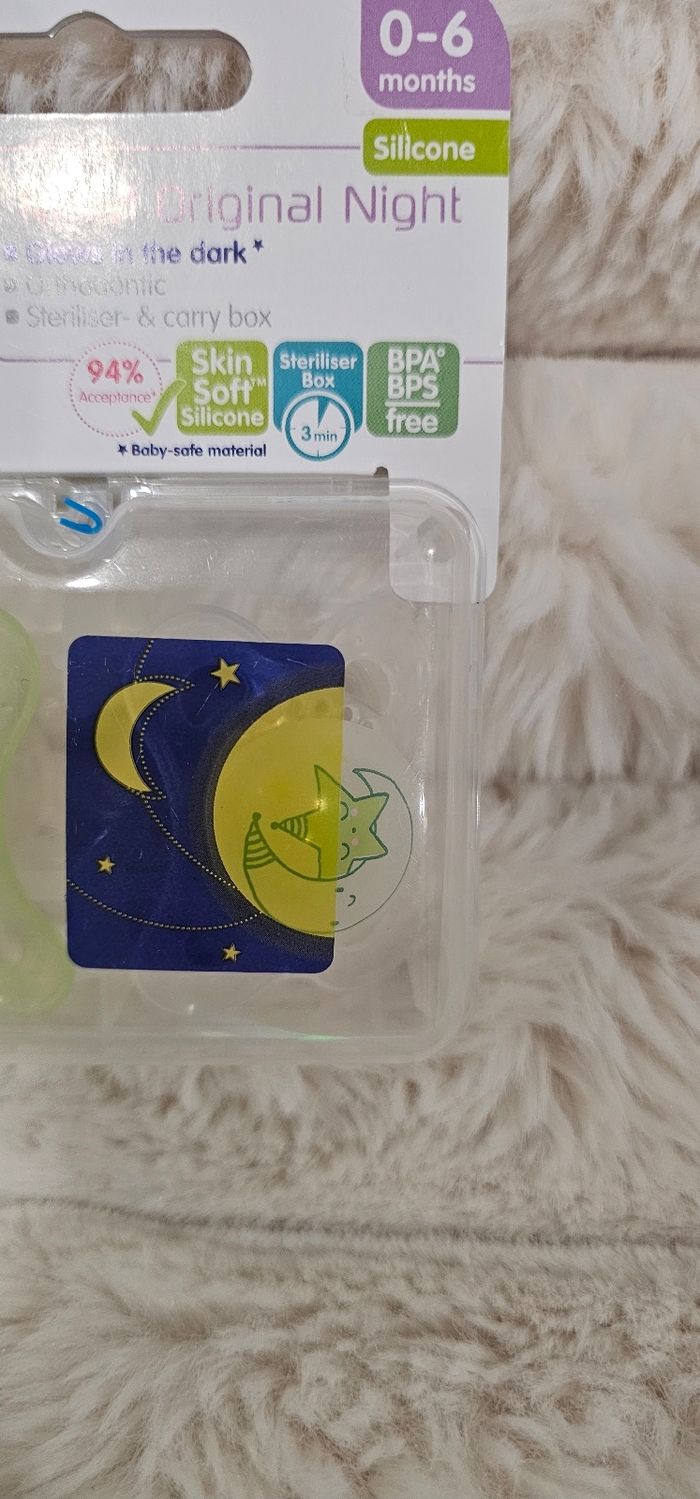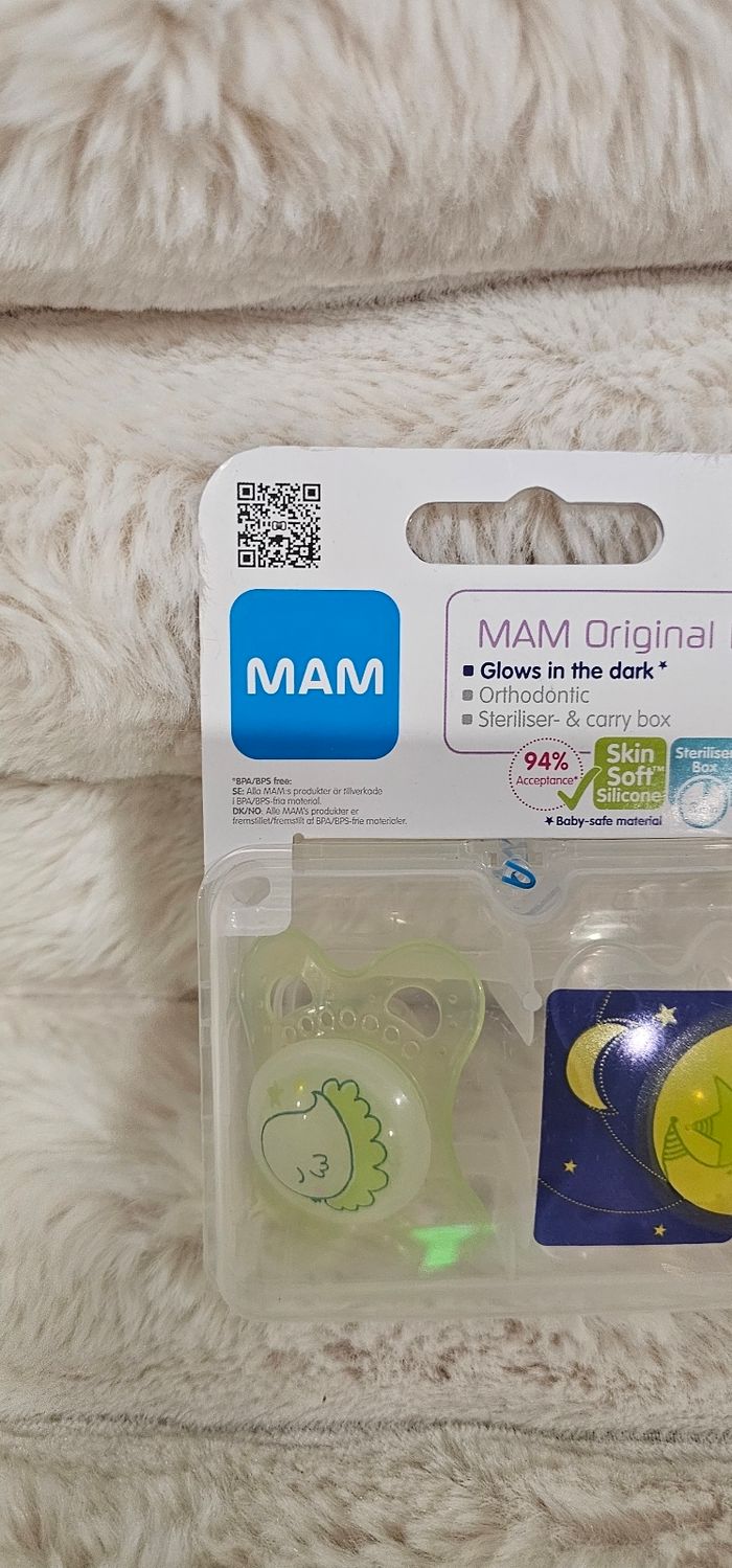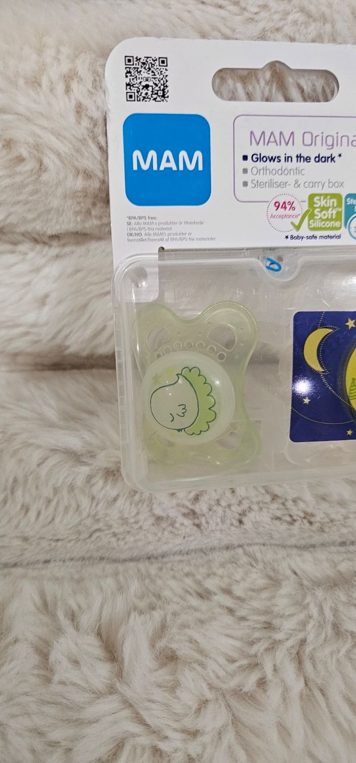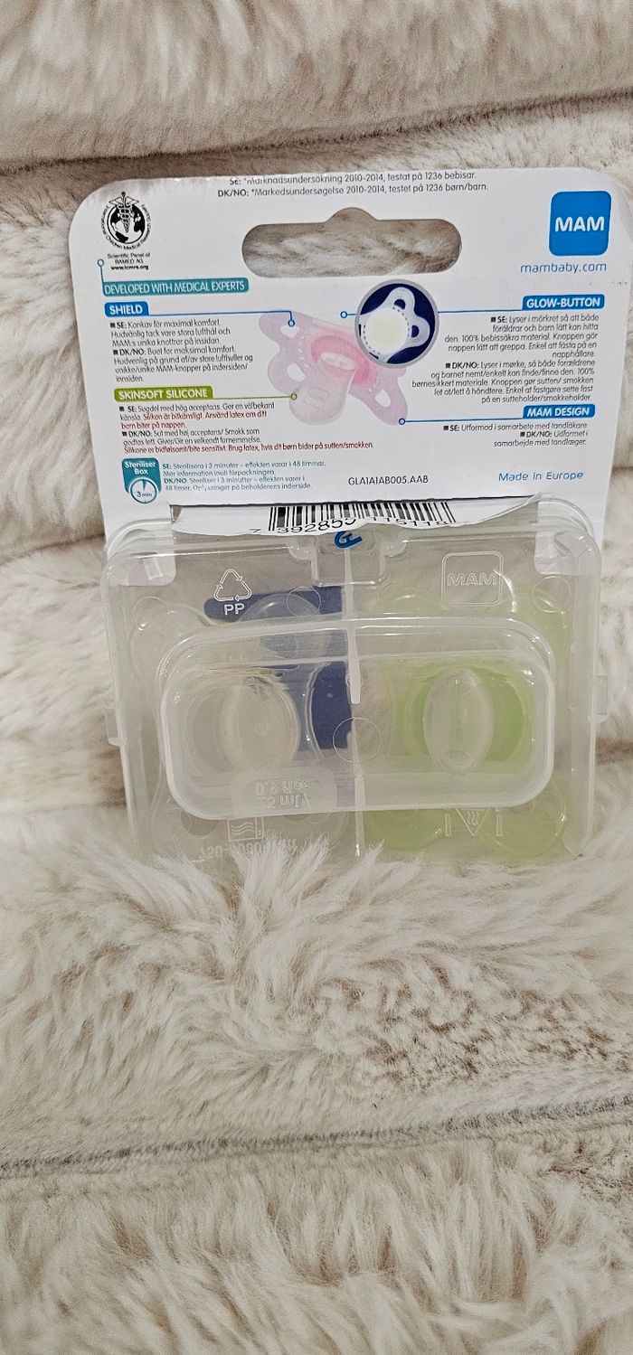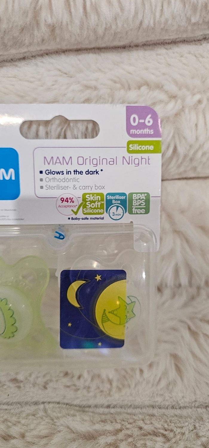 Lot de 2 sucettes orthodontiques Mam Original Night 0-6 mois Neufs