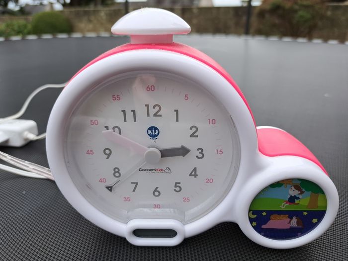 Le réveil éducatif Kid'Sleep de Claessens'Kids est une veilleuse musicale qui aide votre enfant à rester endormi. La petite fille sur la balançoire s'allume à l'heure que les parents ont programmée à l'aide du minuteur. Votre enfant sait qu'il peut se lever lorsque les lumières sont allumées.