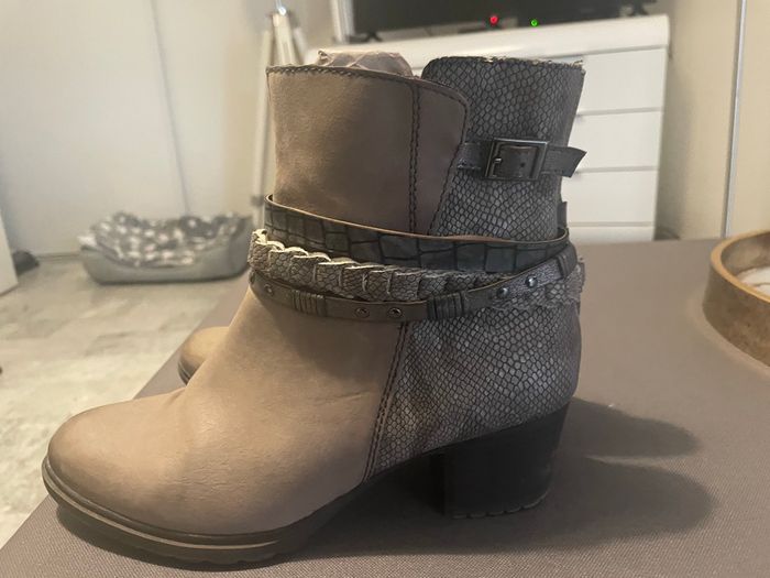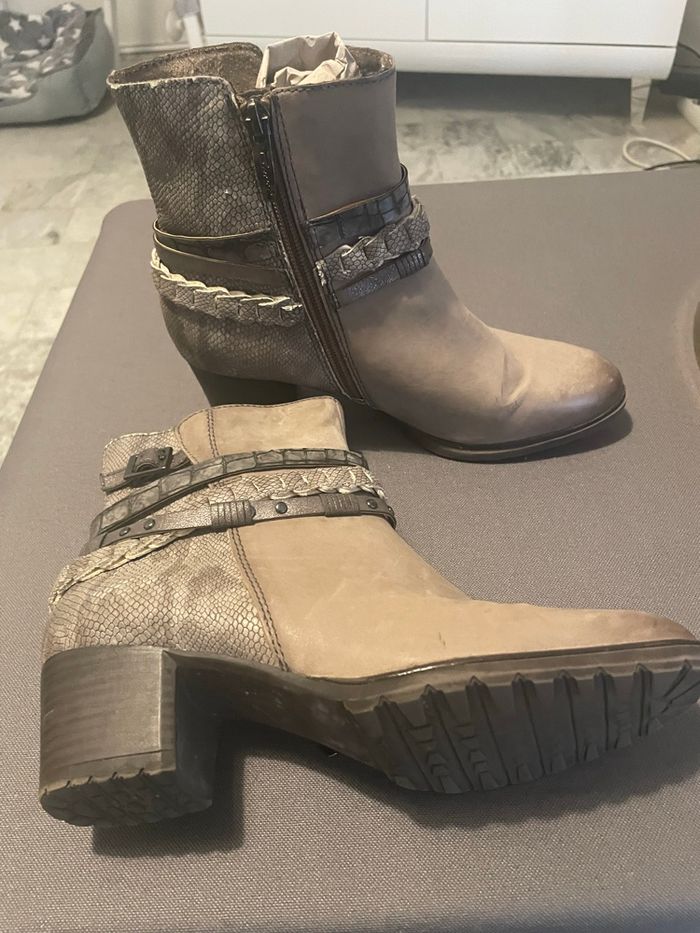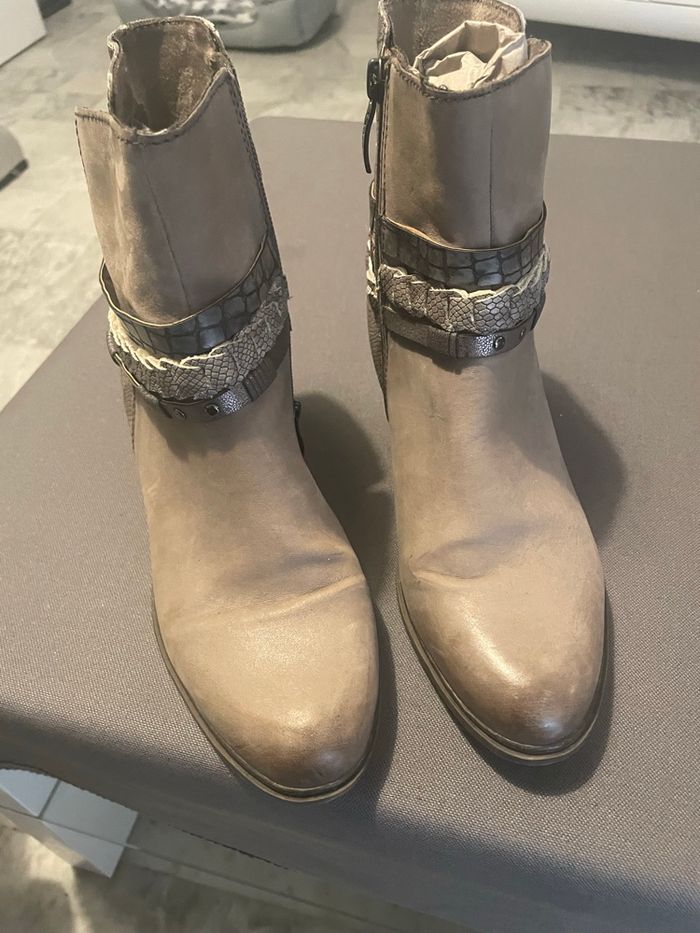 Vends magnifiques boots Tamaris en cuir véritable, couleur taupe/gris.