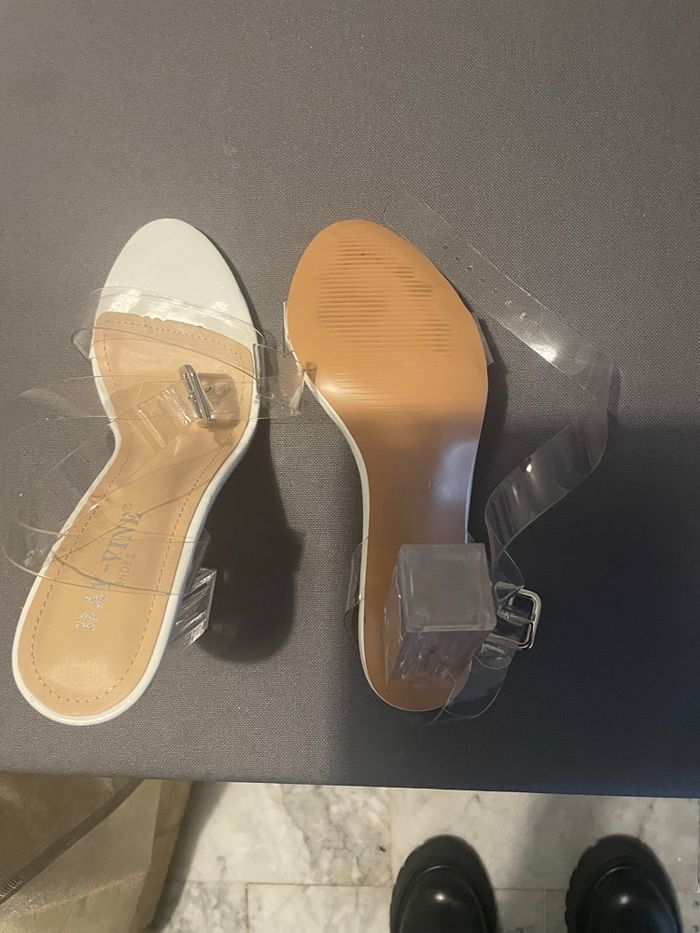 Lanières transparentes croisées à la cheville
